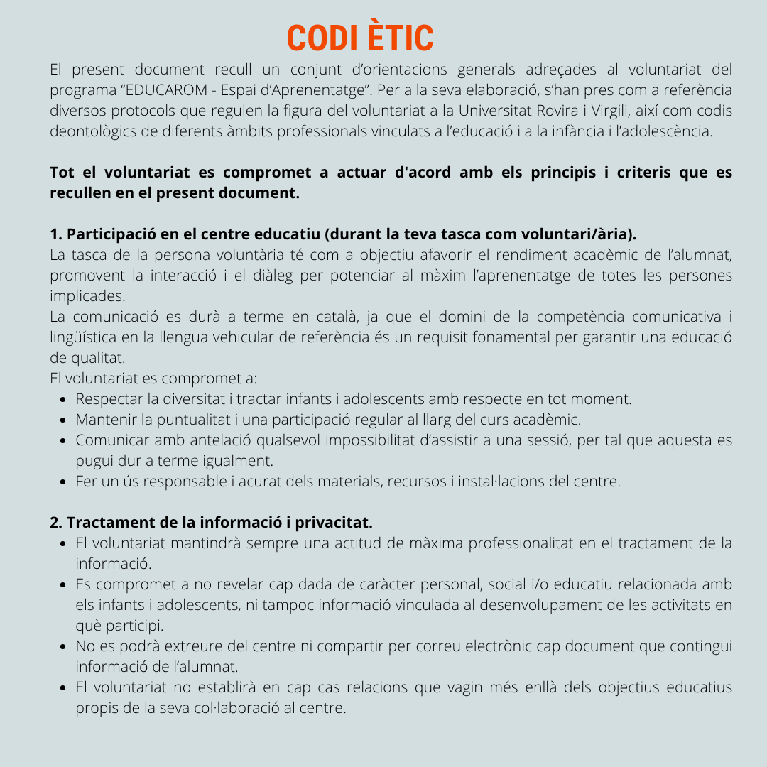 El Espacio de Aprendizaje se enmarca dentro del proyecto europeo SCIREARLY[1], desarrollado en el contexto del programa de investigación e innovación Horizonte Europa de la Unión Europea. Se trata de una medida educativa inclusiva que ofrece actividades de apoyo al aprendizaje y clases complementarias fuera del horario lectivo, con un énfasis especial en la mejora de la competencia lingüística en lengua catalana, lengua vehicular del sistema educativo en Cataluña, para garantizar una educación de calidad y trayectorias académicas de éxito.