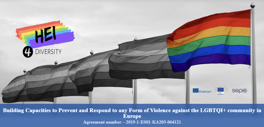 El proyecto HEI4Diversity. La creación de capacidades para prevenir y responder a cualquier forma de violencia contra la comunidad LGBTQI+ en Europa está cofinanciado por el programa Erasmus+ de la Unión Europea.