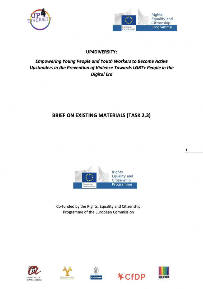 Antes de preparar los Módulos de Formación y los Talleres del proyecto Up4Diversity para educadores, el Consorcio recopiló conocimiento científico sobre la intervención de espectadores y la violencia contra la juventud LGBTIQ+. Con este objetivo, en 2020 se elaboraron 2 revisiones bibliográficas que puedes descargar a continuación.
